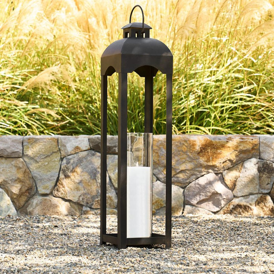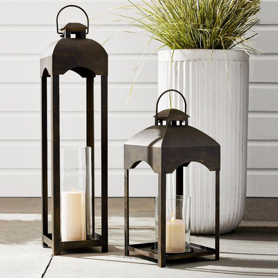 Latest Arrivals Modern Tall Outdoor Black Metal Decorative Lanterns Unique Top Glass Tubes Pillar Candle Holder Handmade Home