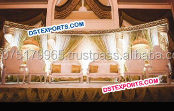 Latest Asian Wedding Crystal Pillar Stage Diamond Cut Pillar Wedding Stage Set Sale Traditional South Indian Reception Stage UK