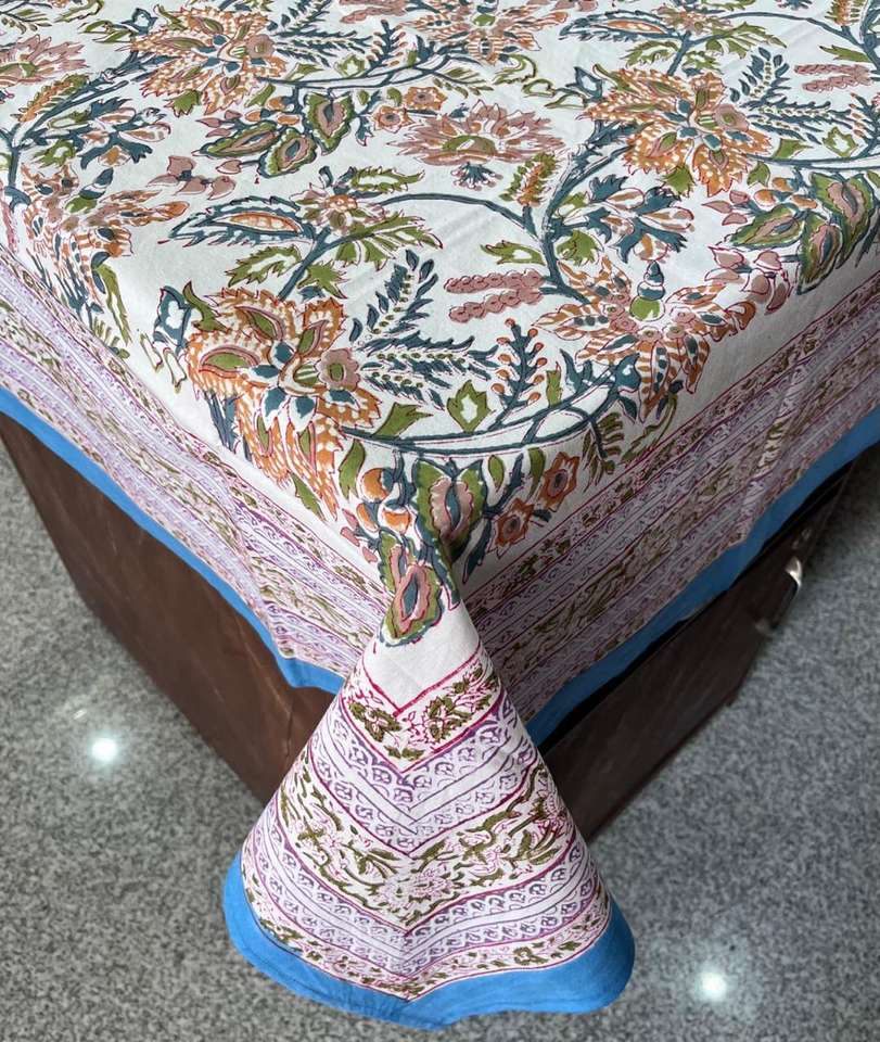 Latest Best Quality Handblock Printed Cotton Tablecloth OEM Table Cover for Home Party or Banquet Floral Printed Bedding Cloth
