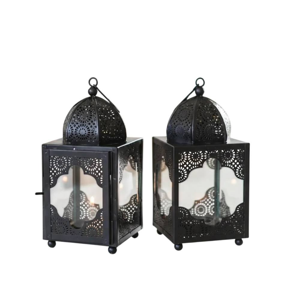 Latest Black Iron Moroccan Style Eco-Friendly Christmas Decorative Handmade Metal Glass Hanging Tabletop Candle Lantern Holder