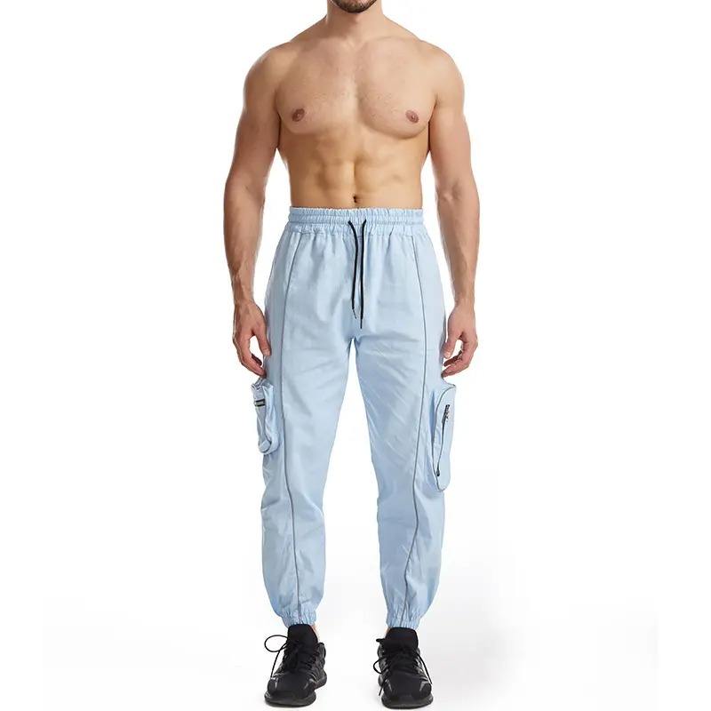 Latest Casual Cotton/Polyester Reflective Mid Waist Fleece Lining Jogger Track Pants Running Sports Loose Cargo Pants for Men
