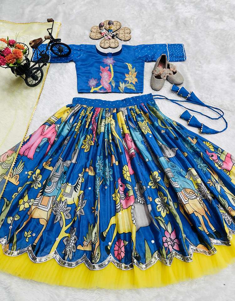 Product Name:Latest Chinon Silk With Print And Embroidery Kids Lehenga Choli