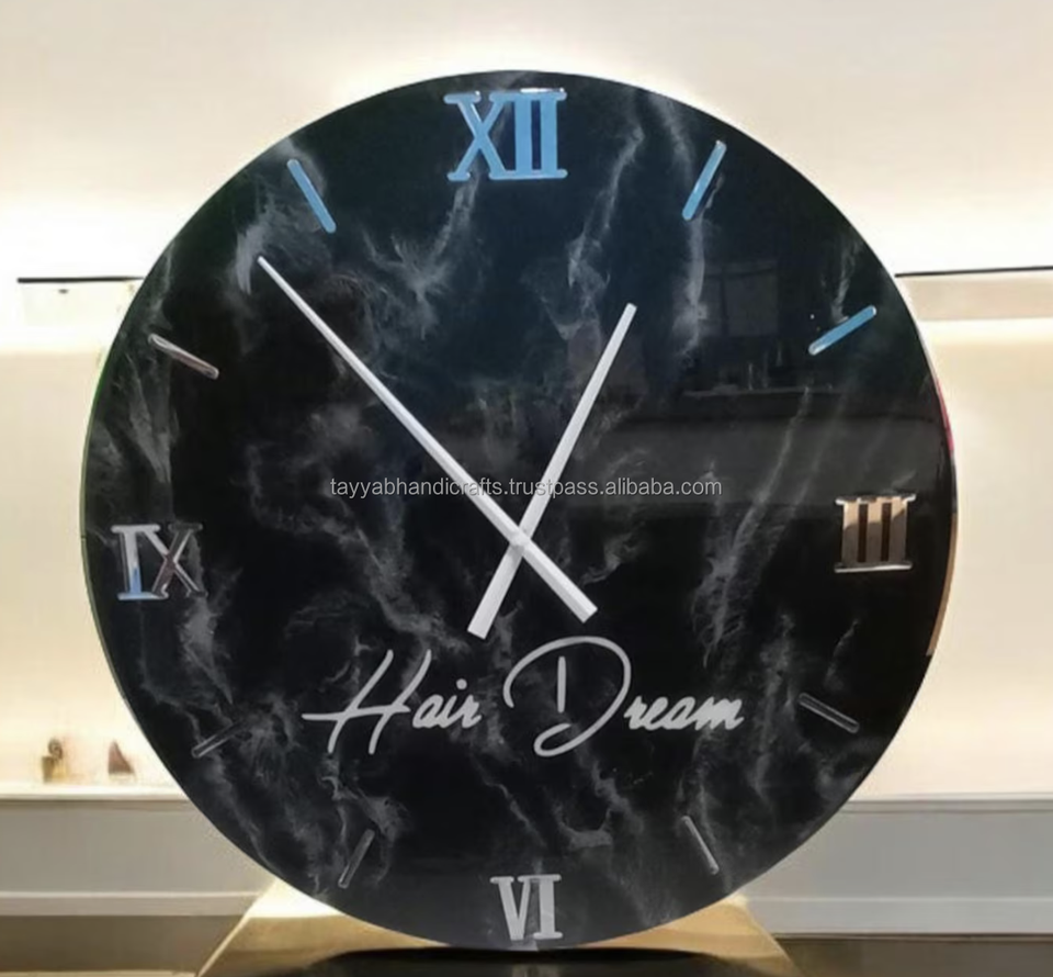 Latest Collection Handcrafted White Epoxy Resin Wooden Wall Clock Customized Interior Decorative from India