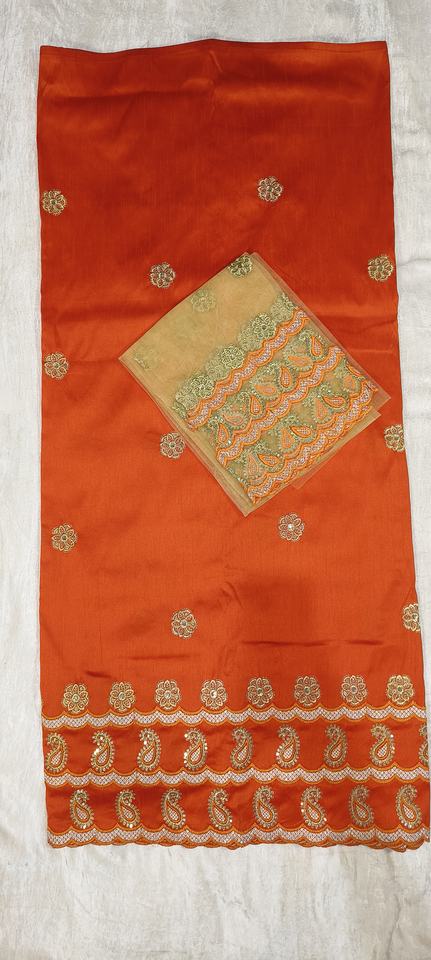 Latest Collection Nigerian George Wrapper Taffeta Silk Fabric With Floral Pattern Anti-Static Breathable Fabric For Wedding Wear