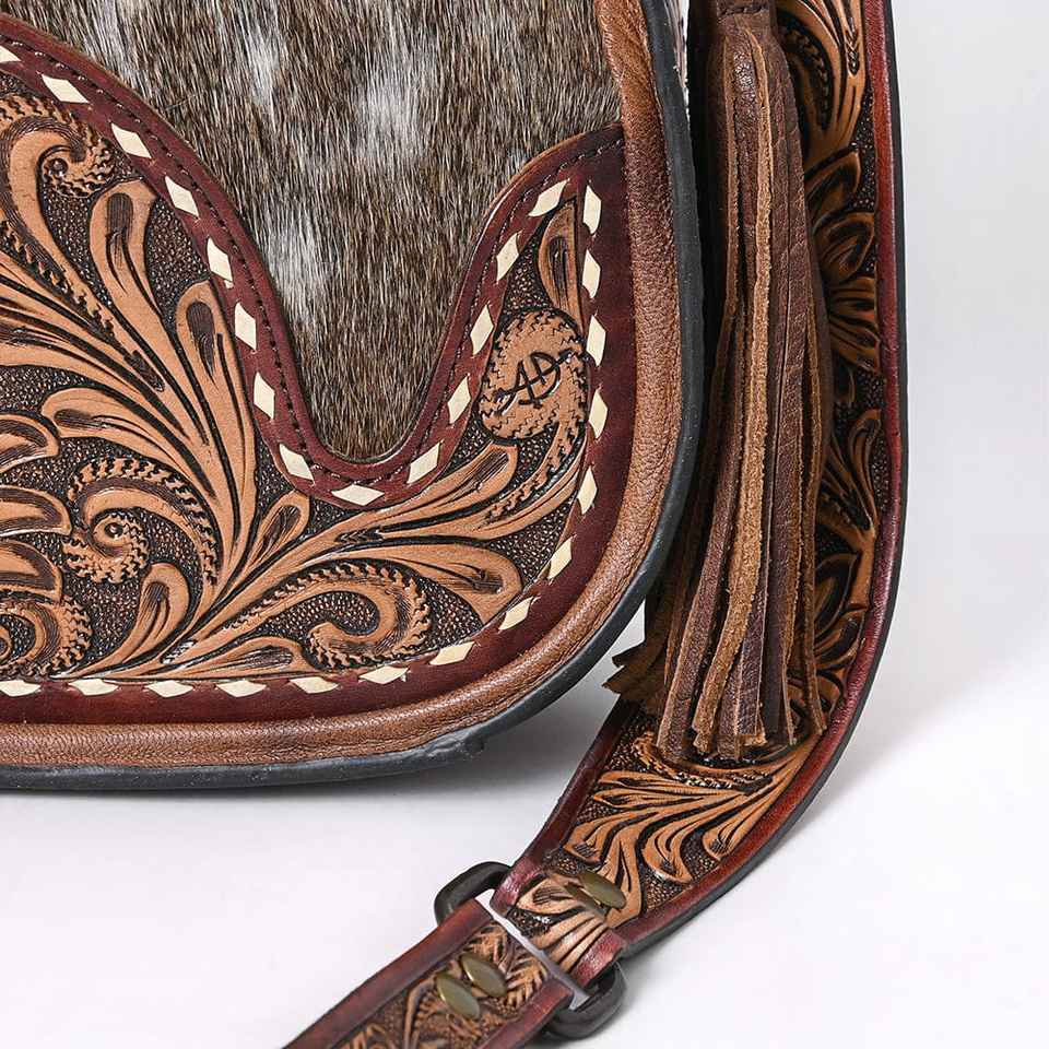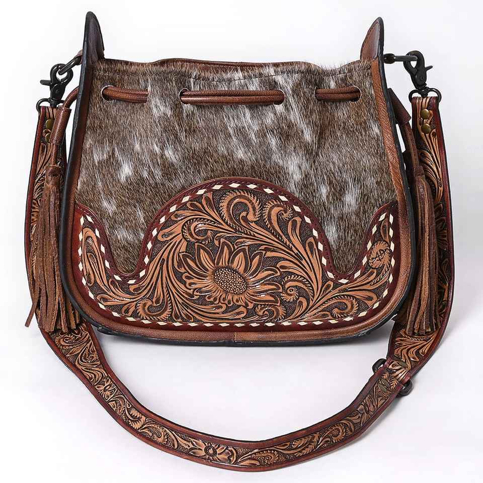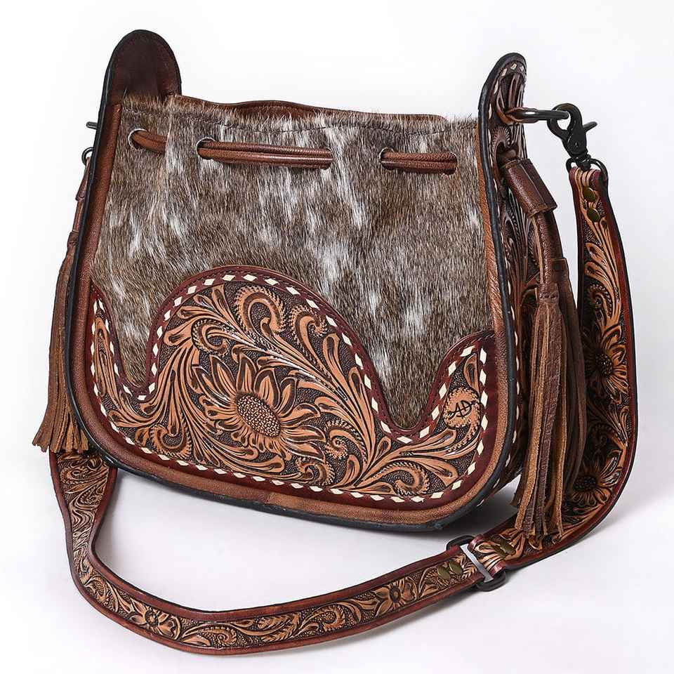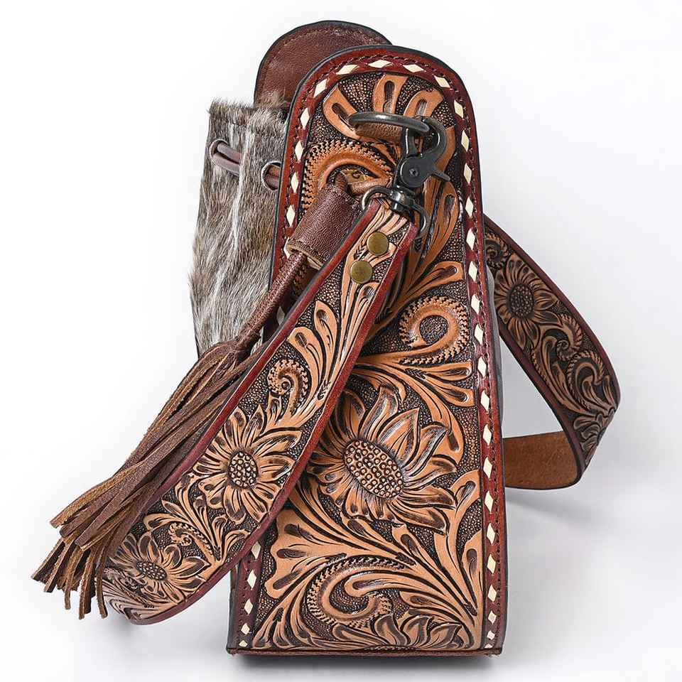 Latest Collection Women's Handcrafted Genuine Leather Sling Satchel Floral Carving Conceal Carry Purse Zipper Crossbody Western
