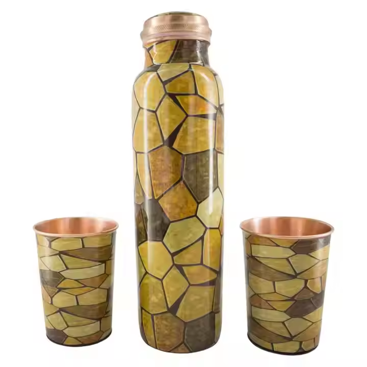 Latest Copper Bottle Multi-color rainbow Theme Design Drinkware Handmade Metal Water Bottle Yoga Ayurvedic High Selling Bottle