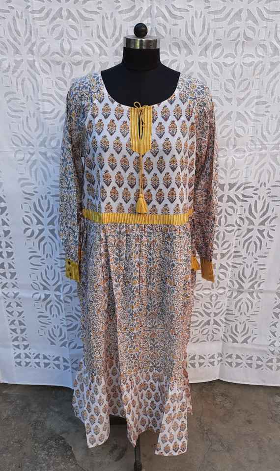 Product Name:Cotton Hand Block Printed Bohemian Tunic Dress