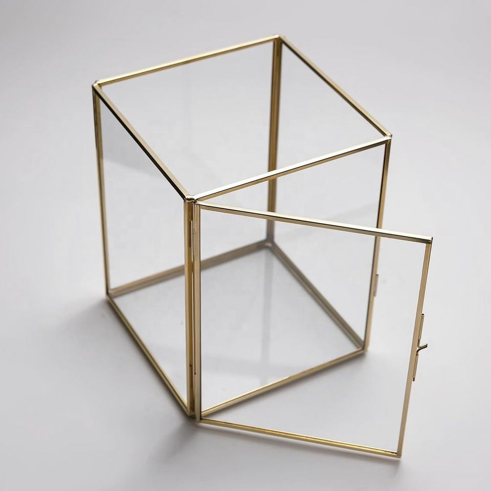 Latest Creative Style Brass and Glass Hurricane Candle Holder with Frame In-front for Photo and Pressed Flowers