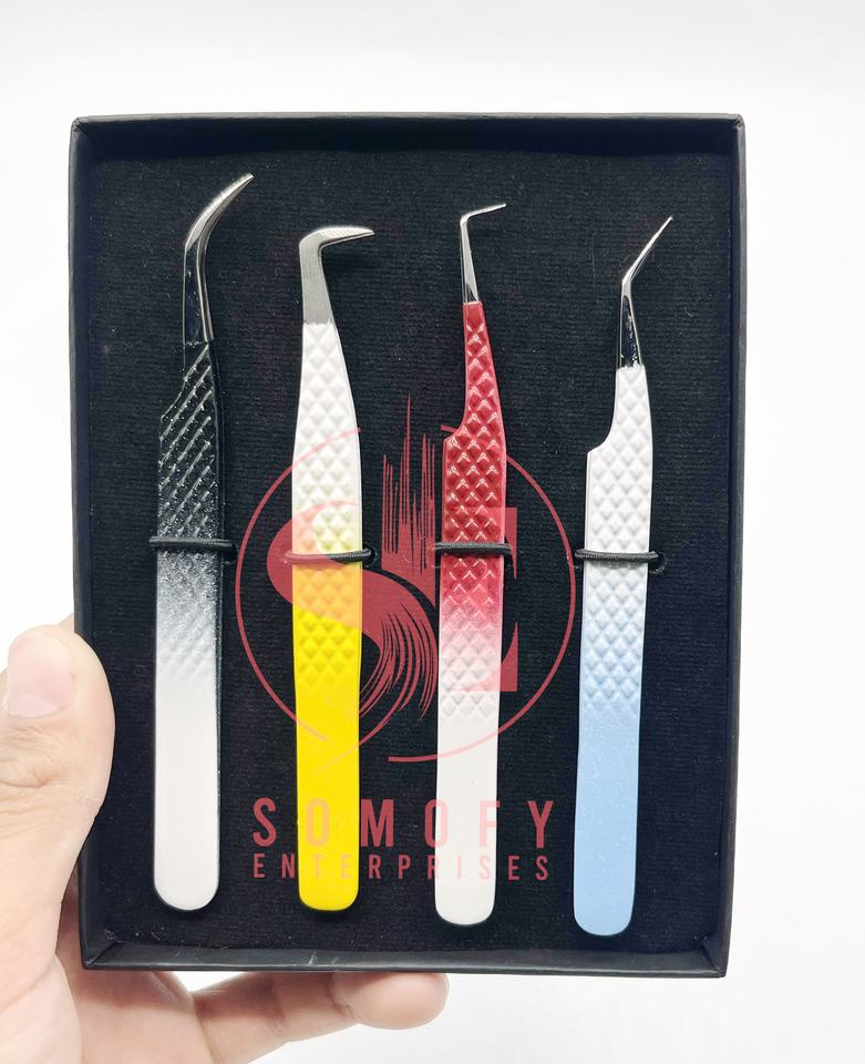 Latest Custom Colors Non-Slip Stainless Steel Volume Lash Tweezers with New Fiber Tip for Eyelash Extension