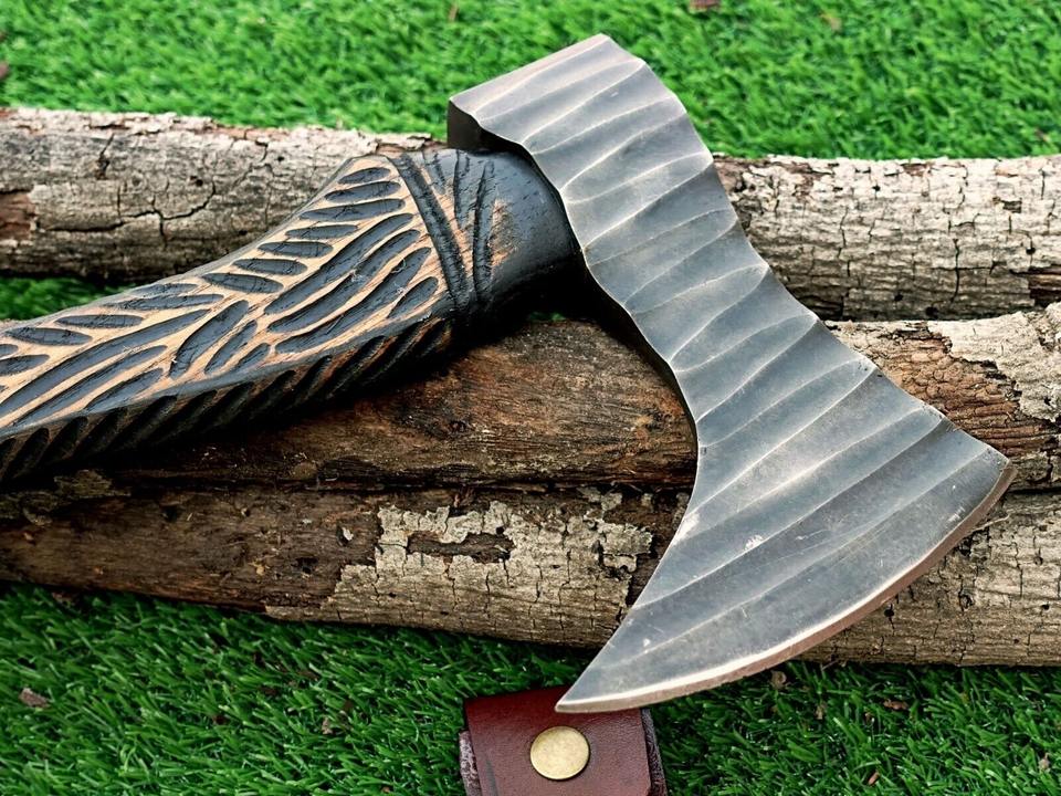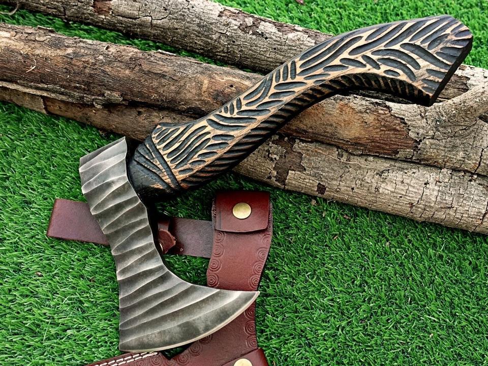 High Quality Custom Carbon Steel Viking Axe Kitchen Chef Knife Hand Forged Engraved Wood Handle with Leather Sheath MOQ 5 Pcs