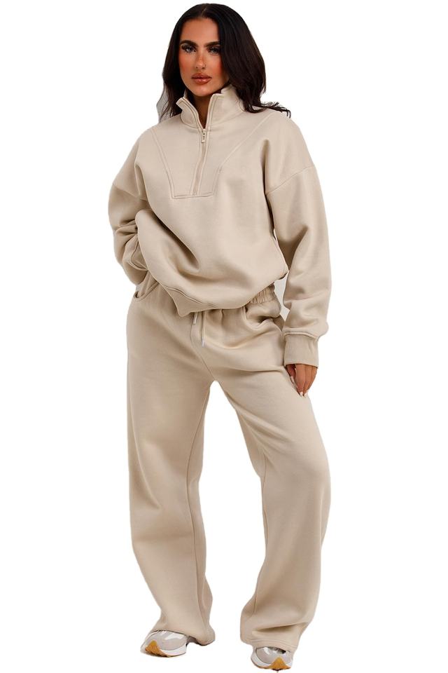 Latest Custom Logo 2 Piece Women Half Zip Sweatshirt & Joggers Tracksuit Set Full Length Women 2 Piece Jogger Sweat Set