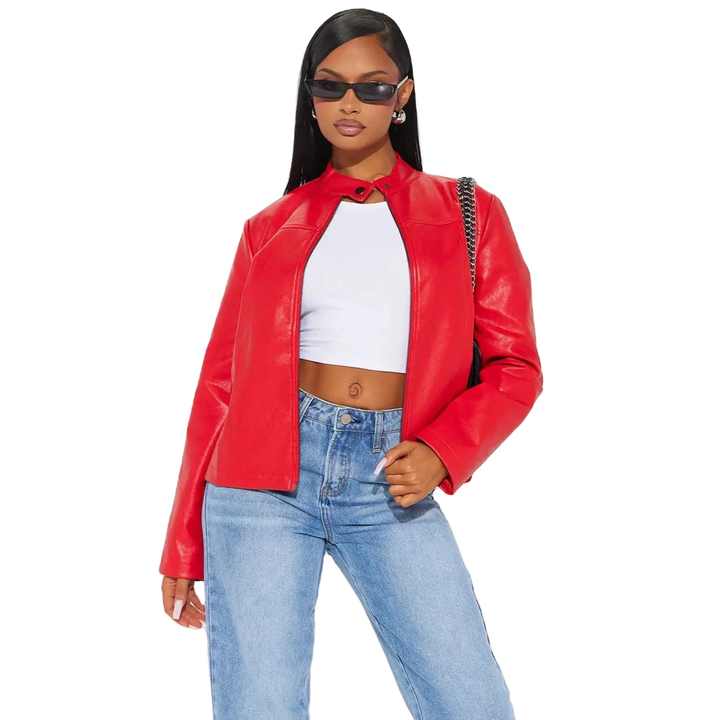 Latest Custom Women's PU Leather Jacket Comfortable Biker Style Hooded Collar Knitted Fabric Heated Motorcycle Jacket Design