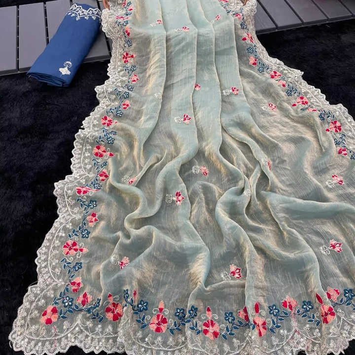 Latest Dazzling Indian Designer Latest Traditional Chiffon Sky Blue Saree Exclusive Fancy Party Bridal Wear Most Selling Women