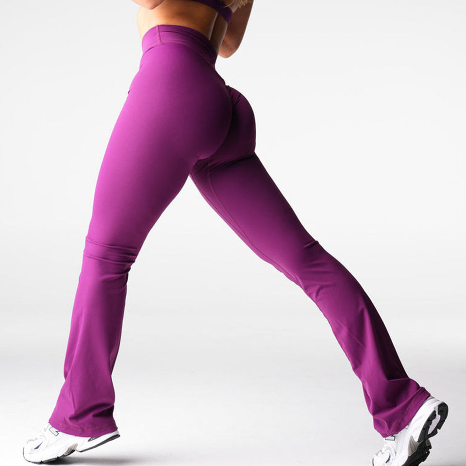Latest Deep Violet Effortless Flare Leggings Figure Flattering Hip Seam High Waist & Active Wear Fashion Gym Leggings For Women