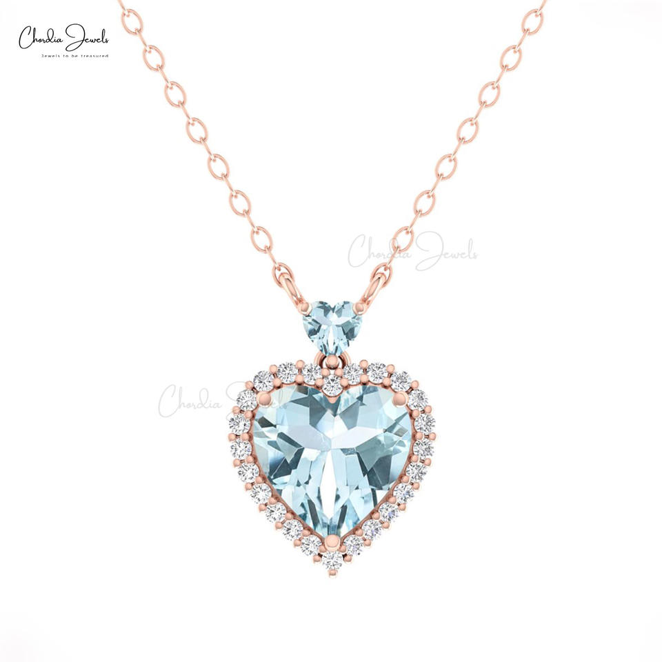 Latest Design 1.75 CTW Natural Tanzanite Dual Heart Necklace Pave Diamond Halo Necklace 14k Solid Gold Wholesale Fine Jewelry