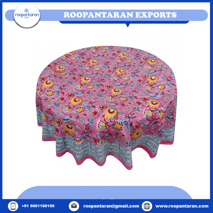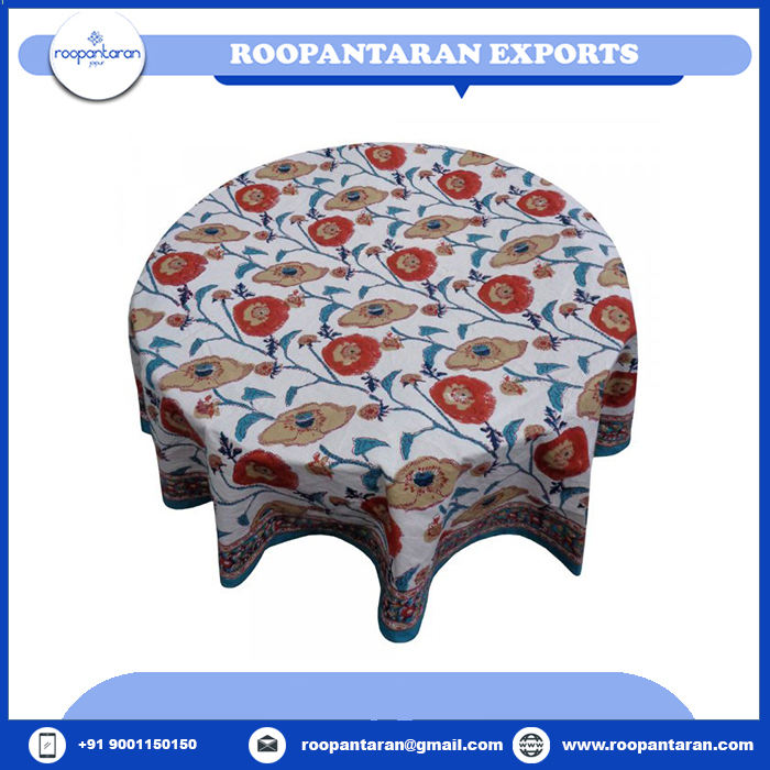 Latest Design 100% Cotton Tablecloths Hand Block Printed Jacquard Technique Well Absorbing 20Sheeting Tablecloth 180Cms Price
