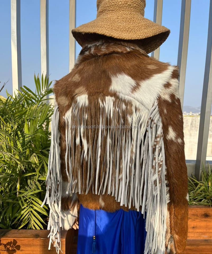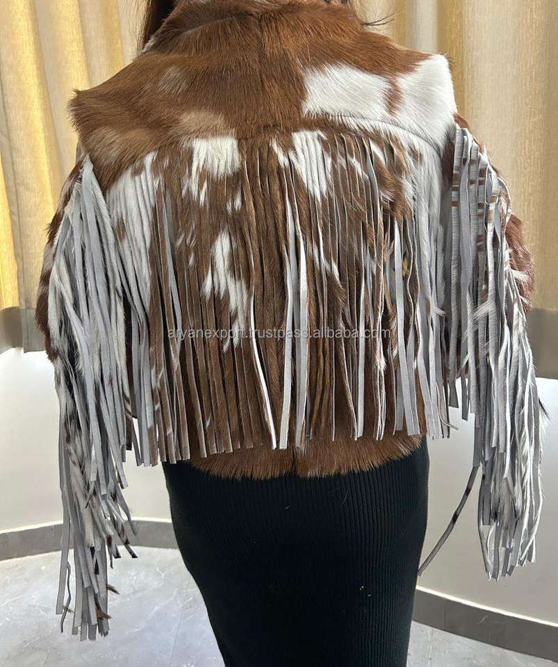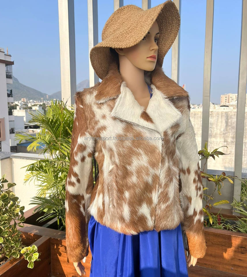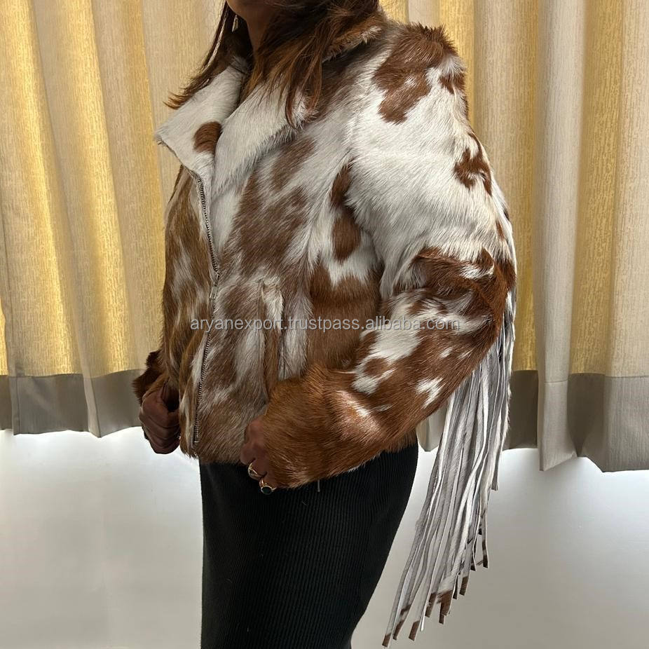 Latest Design 2025 Women's Fashionable Real Hair on Hide Cowhide Leather Jacket High Quality Turn-down Collar Motor Biker Jacket