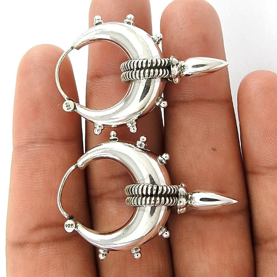 Latest Design 925 Sterling Silver Big Hoop Earrings Handmade Indian Artisan Jewelry Bulk Wholesale Price Supplier Manufacturer