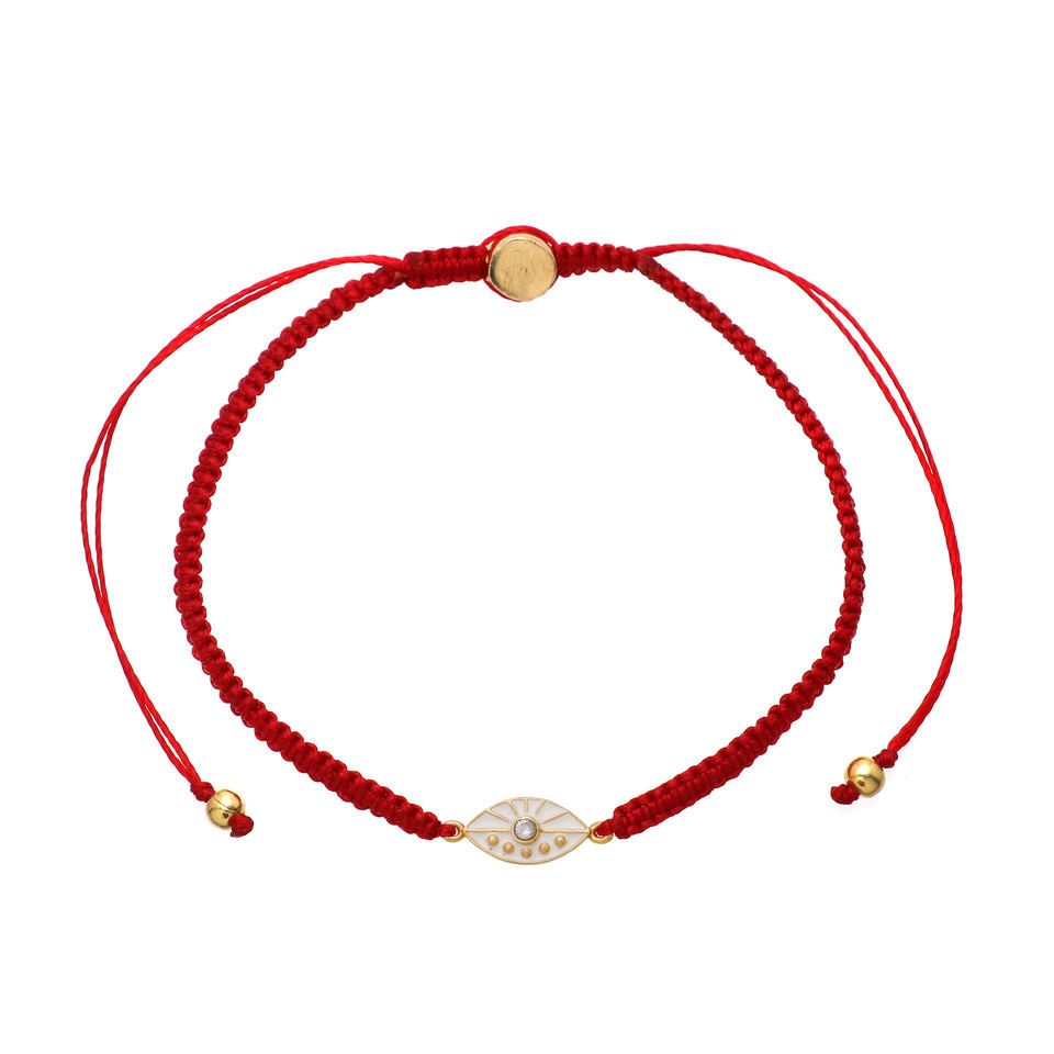 Latest Design 925 Sterling Silver Gold Plated Red Macrame Bracelet with Enamel EvilEye Charm 18K Gold Plating Bracelet
