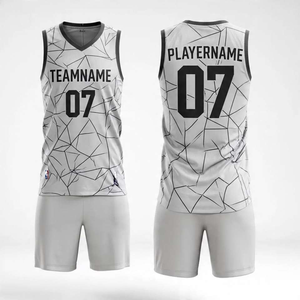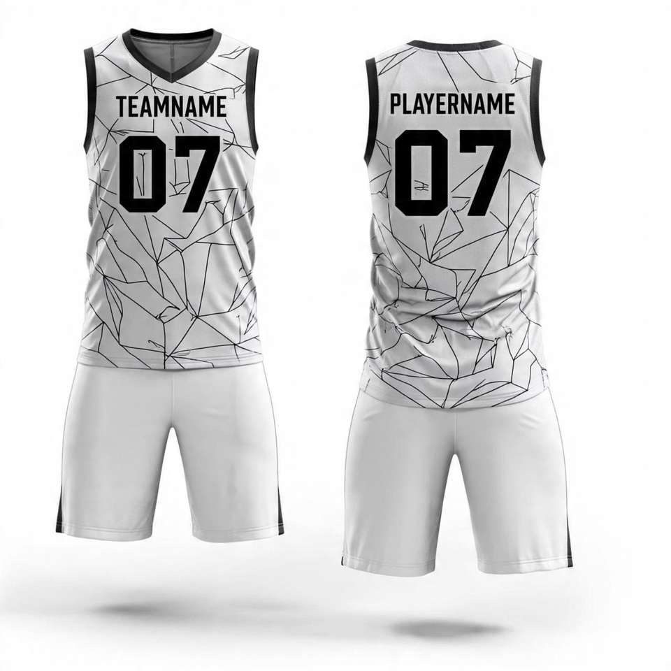 Latest Design Basketball Jersey Sets Top Quality Breathable Polyester Black And White Custom Jersey Basketball Uniform For Men