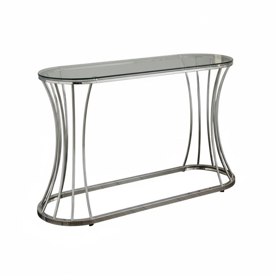 Latest Design Console Table Elegant Clear Glass Top With Polished Chrome Curved Metal Frame Entryway Hallway Sofa Side Table