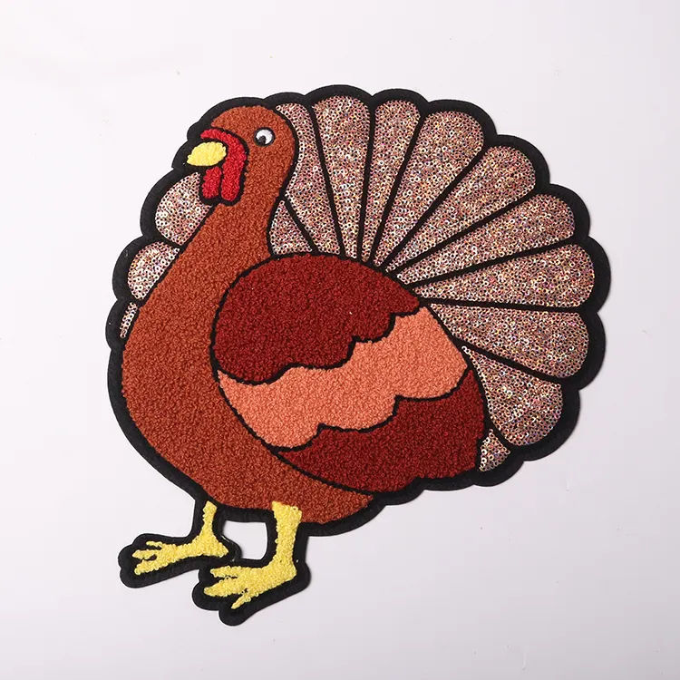 Latest Design Large Flower Shape Chenille Patches Custom Logo Heat Transfer Embroidered Iron Sequins Sew-On for Clothing Hats