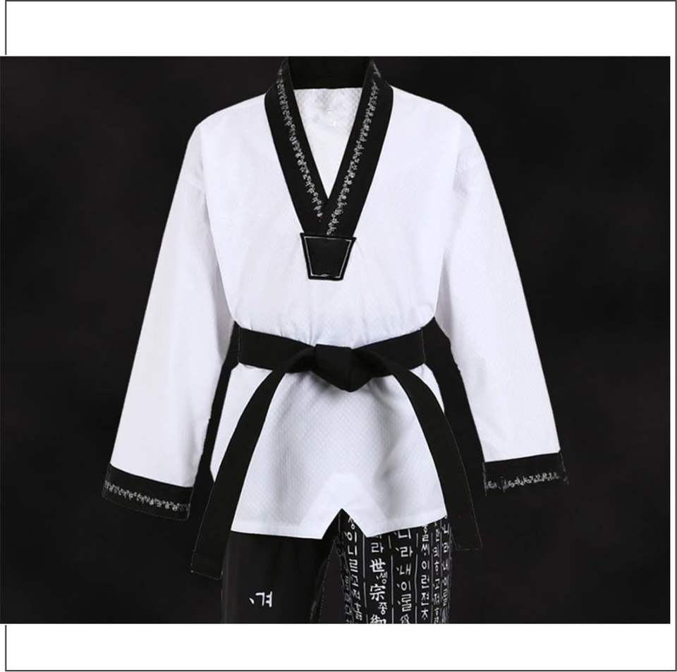 Latest Design Custom Logo Easily Taekwondo Uniform Black V Neck for Adults MMA Martial Arts Karate Unisex Polyester/Cotton