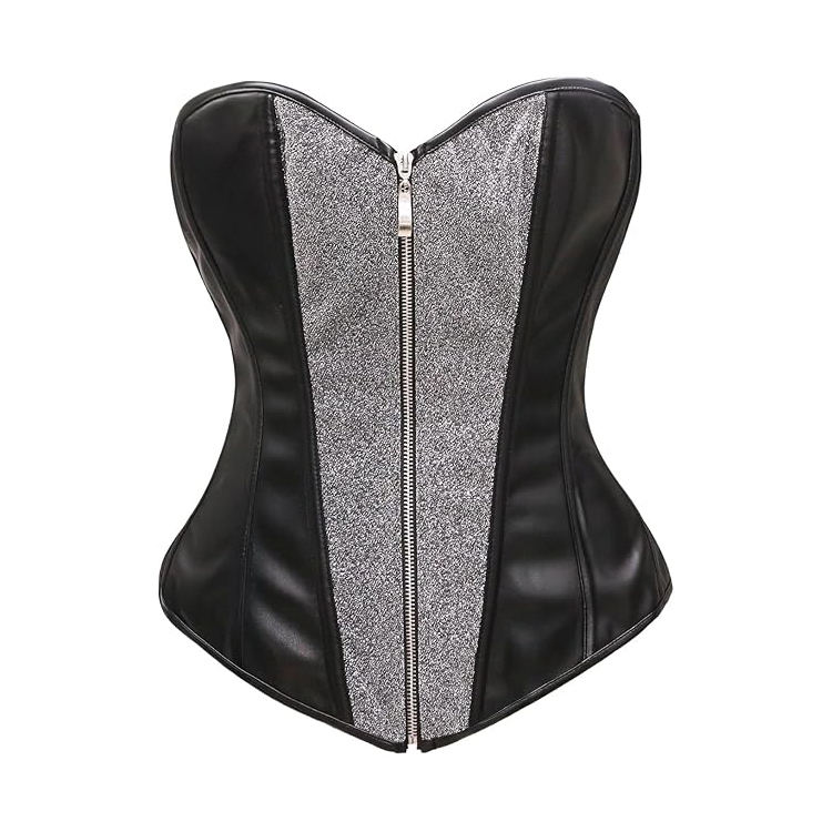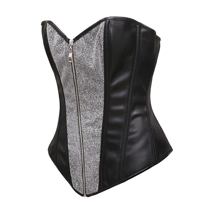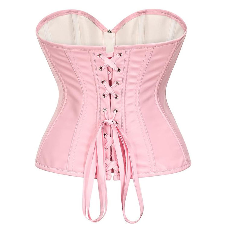 Latest Design Double Steel Boned Breathable Tummy Control Waist Training Canvas & Genuine Leather Long Bust Shaper Women Corset