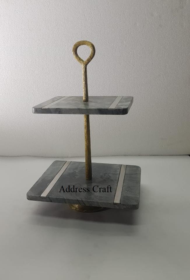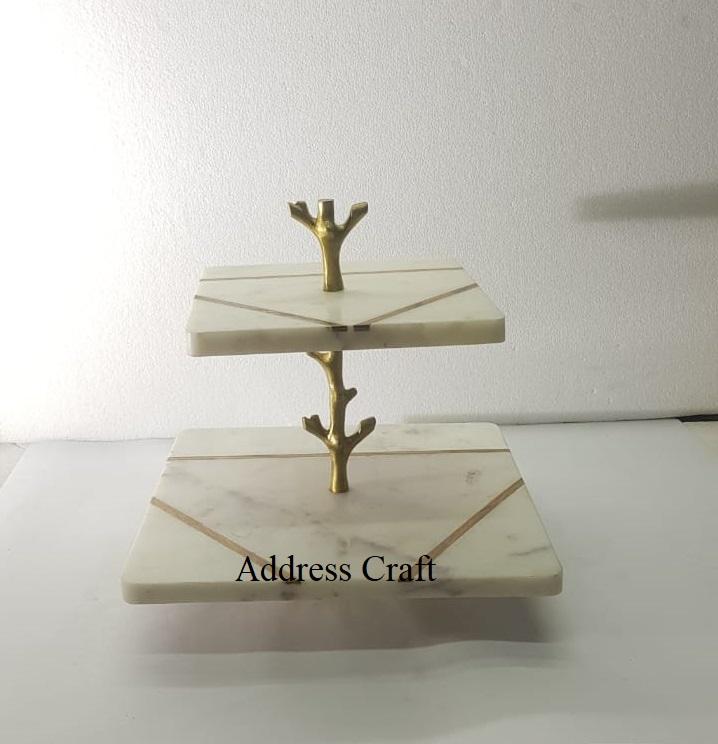 Latest Design Double Tier Round Cake Stand with Marble Brass Handle for Christmas Hotels Restaurants Weddings Birthday Parties