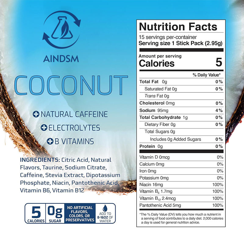 Latest Design Electrolyte Mix Coconut Vitamin Powder Sachet Natrual Electrolyte Hydration Improve Exercise Performance Powder