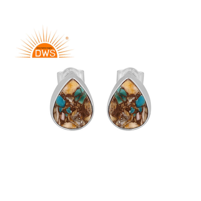 Designer Fine Sterling Silver Natural Mojave Copper Oyster Turquoise Gemstone Stud Earring Jewelry Manufacturer