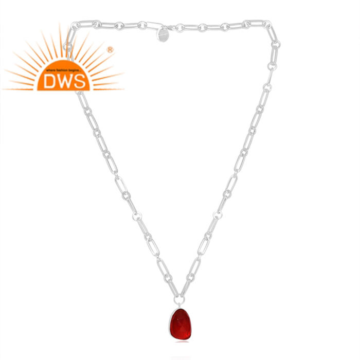 Latest Design Fine Sterling Silver Natural Doublet Garnet Quartz Gemstone Pendant Necklace Jewelry for Women Gift for Her