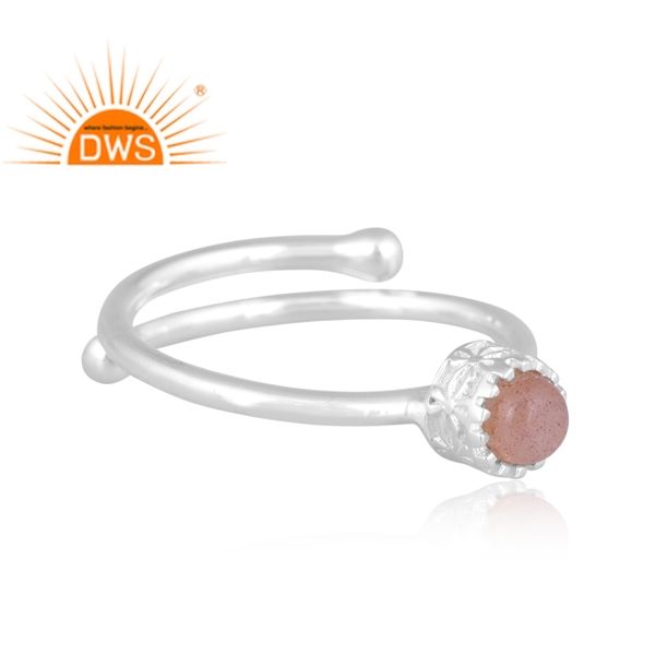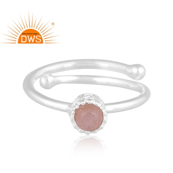 Latest Design Fine Sterling Silver Natural Peach Moon Stone Gemstone Stackable Ring Custom Jewelry Manufacturer