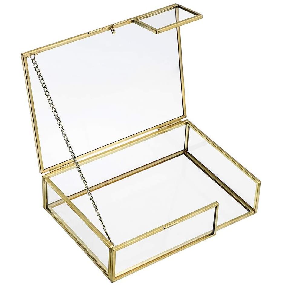 Latest Design Glass Card Holder Box with Gold Brass Frame, Perfect for Wedding Receptions, Keepsakes & Terrarium