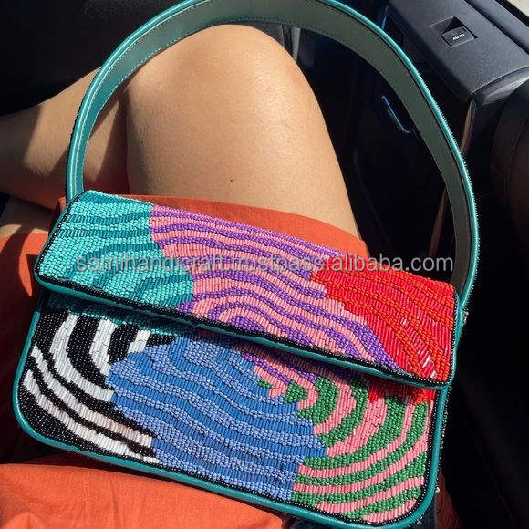 Latest Design Hand Pouch Beaded Embroidered Seed Bead Handmade Minibag with Customized Color for Women and Girl