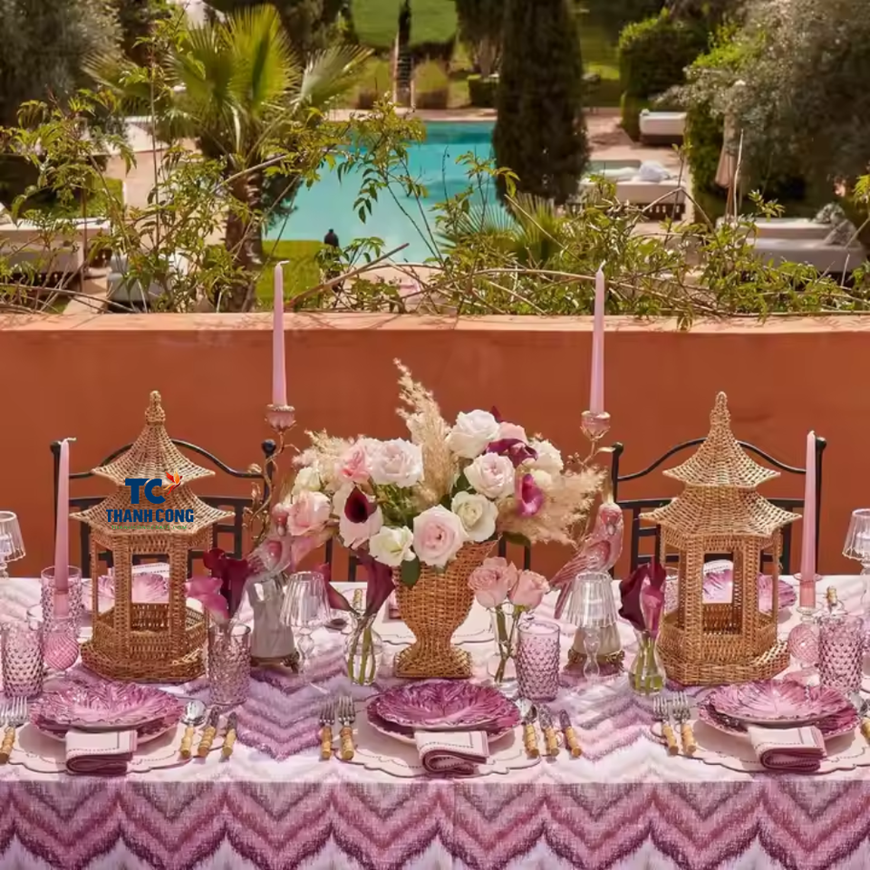 Latest Design Handwoven Rattan Pagoda Lantern Vietnam Wholesaler Rattan Lantern Cover for Table Decoration Made From Vietnam