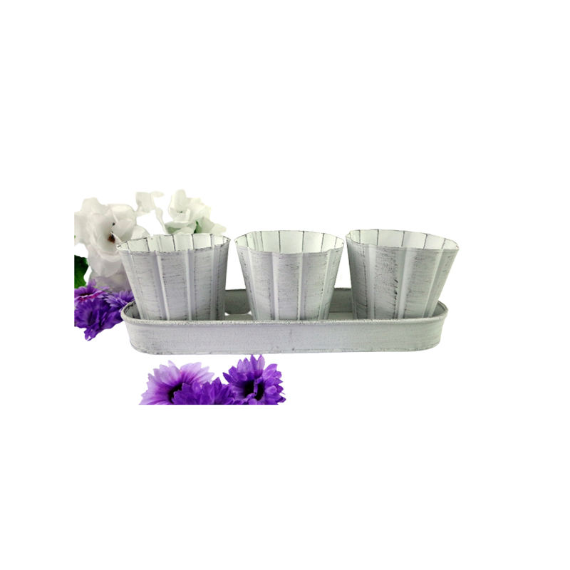 Latest Design Living Room Decorative Metal Tray With 3 Planter White Wash Pot for Indoor & Outdoor Decoration Handmade