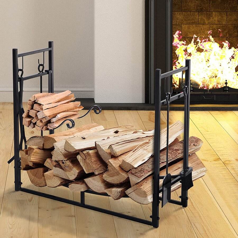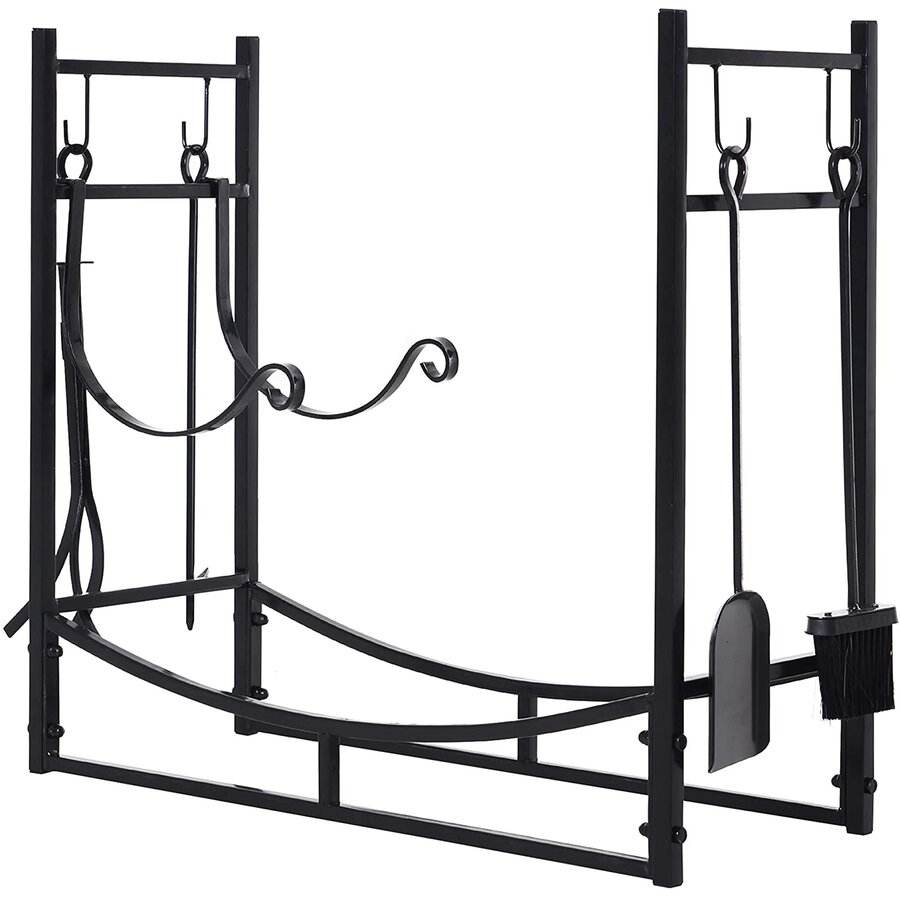 Latest Design Log Storage Rectangle Frame Black Powder Coated Heavy Duty High Quality Outdoor Fire Pit Accessories Hot Sale