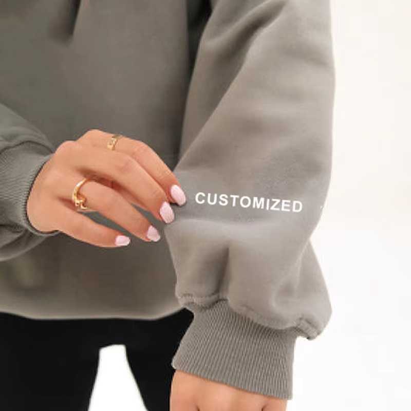 Latest Design Winter Long Loose Oversized Hoodies Women 100% Cotton Velour Fabric Custom Made Logo Printing Pullover Hoodie