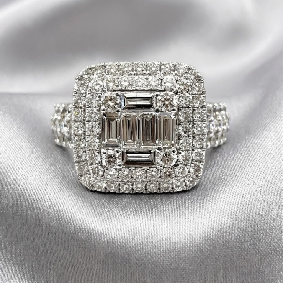 Latest Design Luxury Illusion Baguette Cluster 18 Karat White Gold Real Diamond Jewels Solitaire Ring for Female Gift