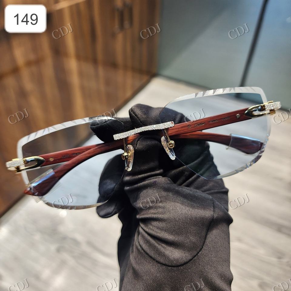 Latest Design Luxury Sunglasses Light Blue Shades Lens Iced VVS Clarity D Color Moissanite Diamond Studded Hip Hop Branded Glass