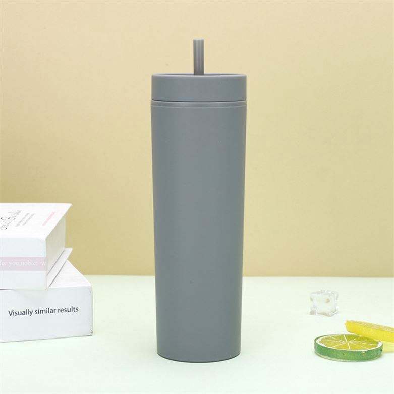 Latest Design Matte Skinny Acrylic Tumbler Plastics Straight Cup With Lid and Straw Wholesale 16Oz Cold Cup