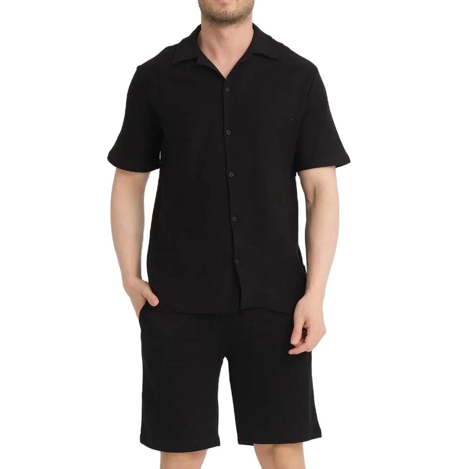 Latest Design Men Oversized Button T Shirt Shorts Sets 100% Cotton Fleece Breathable Clothing Manufacture Men Short Sets For Men