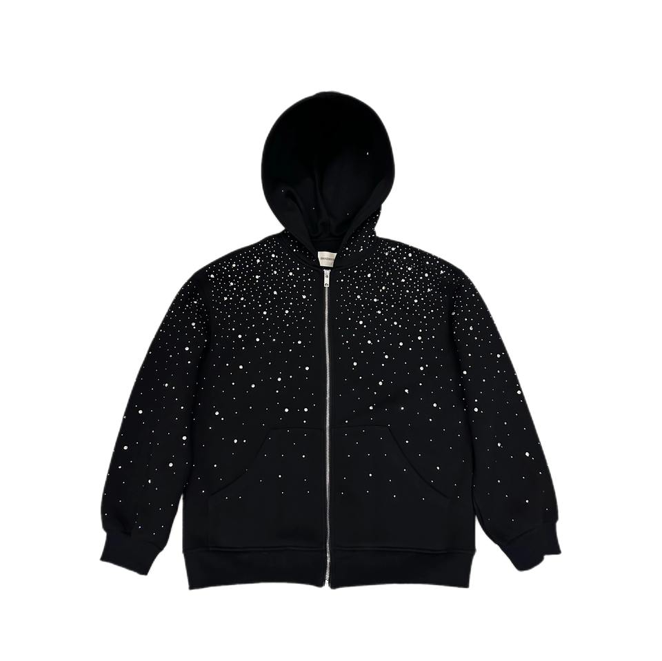 Latest Design Men Top Quality zipper hoodies Factory Custom Full Zip up Hoodie 500 Gsm Rhinestone men's Hoodies