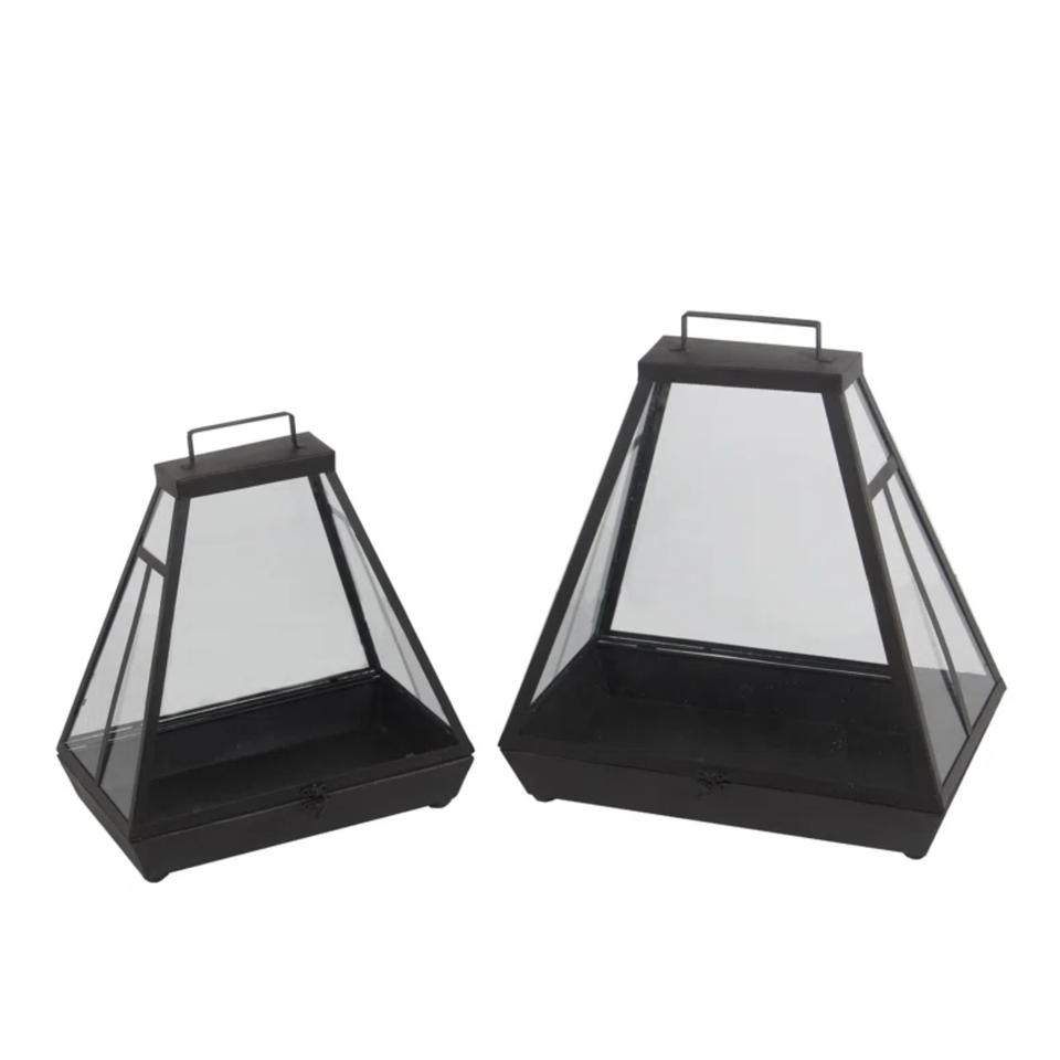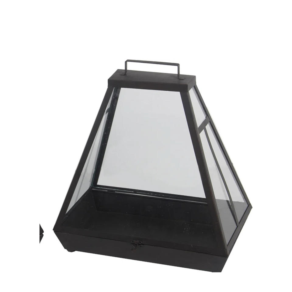 Latest Design Modern Striped Handmade Metal & Glass Pillar Candle Lantern for Home Wedding and Christmas Decor