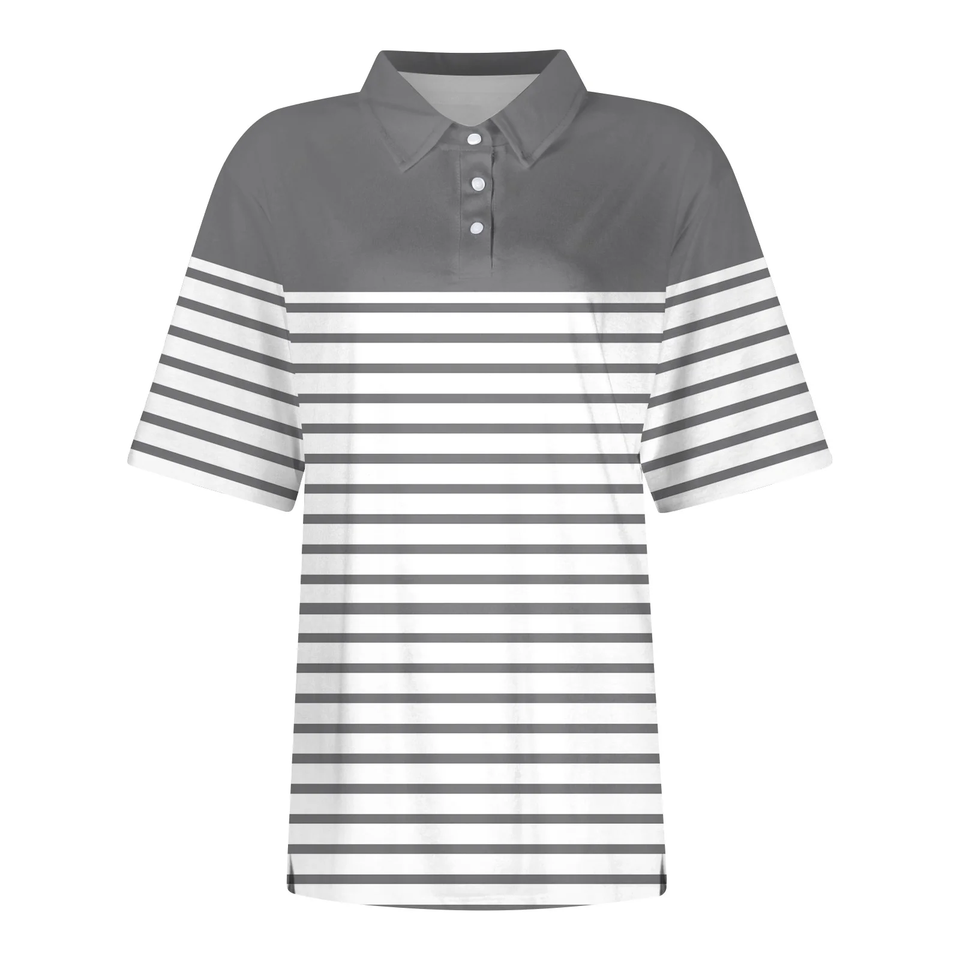 Latest Design Plus Size Women's Striped Polo Shirts Casual Stylish Striped Turn Down Collar Short Sleeve Polo Shirts For Women