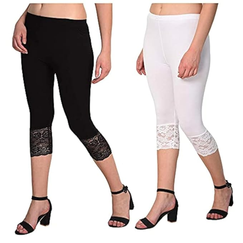 Latest Design Premium Quality Cotton / Spandex Women's Cropped Lace Legging Customized Color Size High Waist Formal Style Soft