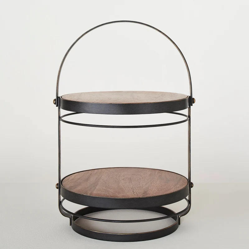 High Quality 2-Tier Metal Cake Server Latest Design round Shape Dessert Snacks Stand Price