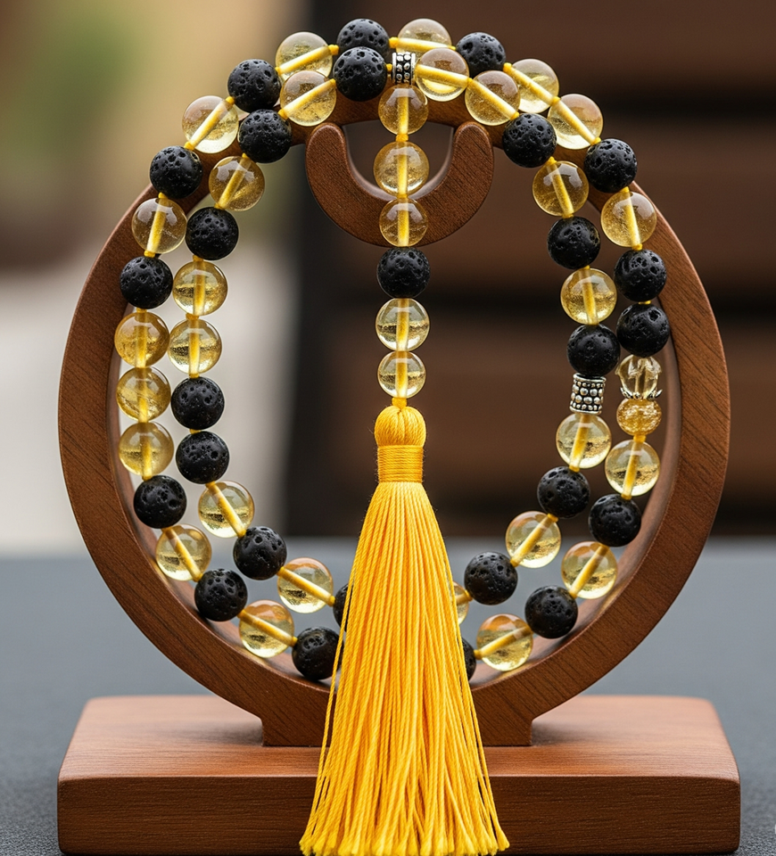 Latest Design Spiritual Handcrafted Bohemian 108 Mala Beads Necklace Natural Lava Citrine Healing Crystal Stone for Buddhism