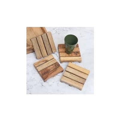 Set of 4 Brown Wooden Coasters Latest Design Square Mats for Tea and Coffee Mugs Enhance Home Décor